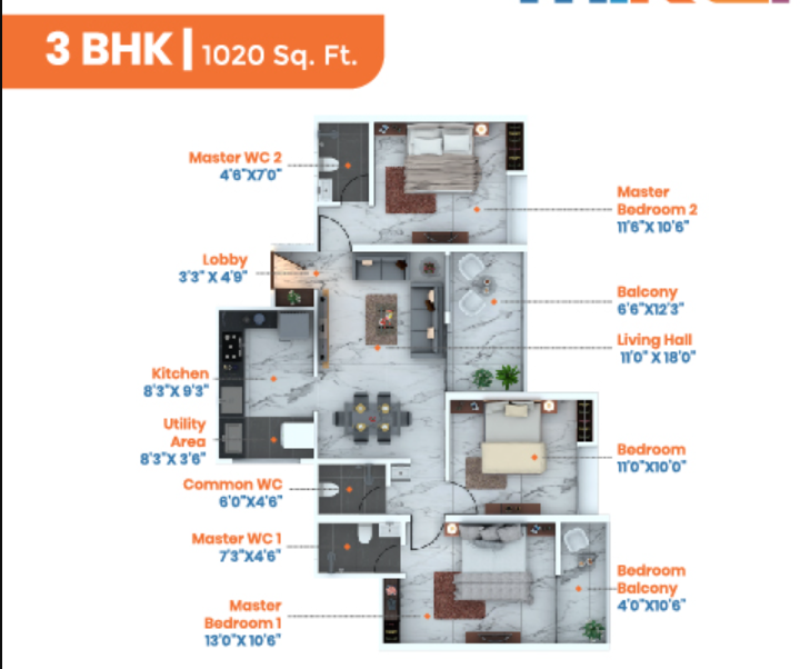 1020 sq ft 3 BHK 3T Apartment in GK Associates And Aishwaryam Group Mirai