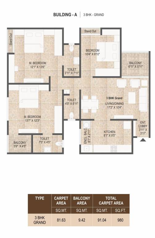 980 sq ft 3 BHK 3T Apartment in Mangalam Landmarks Mangalam Melizma