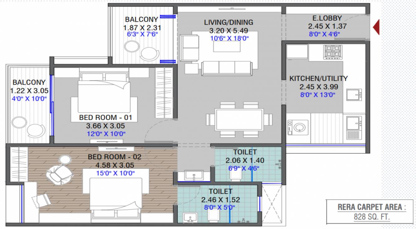 828 sq ft 2 BHK 2T Apartment in Menlo Realty Joywoodsby Menlo Realty